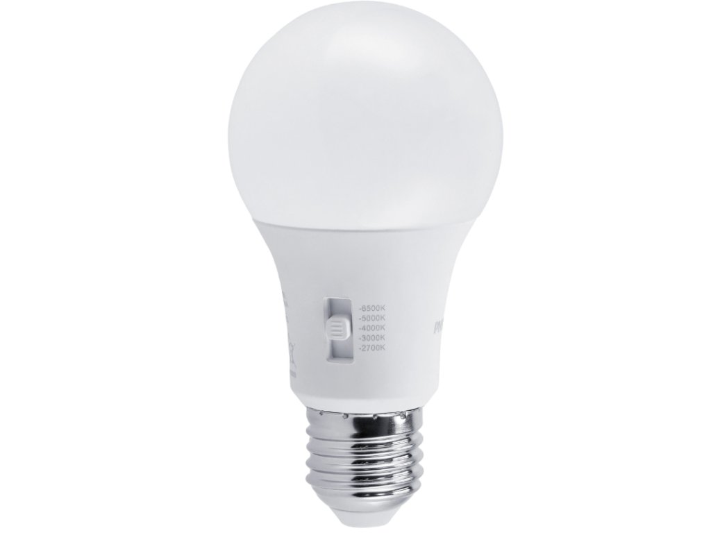 Technické údajeZákladňa:E27 Výkon:8 W (ekvivalent 60 W) Svetelný tok:806 lúmenov Teplota farby:2700K / 3000K / 4000K / 5000K / 6500K (5CCT – volí sa zapnutím žiarovky) Stmavnutie:Áno, kompatibilné so stmievačmi LED Uhol lúča:200° Koncentrácia indexu (CRI):80 Účinnosť:100 lm/W Čas začiatku:0,5 sekundy Napájanie:220 – 240 V, 50/60 Hz Účinník:0,7 Materiál:materiál, matné tienidlo Formulár:A60 Rozmery:60 × 115 mm Energetická trieda:F Trvanlivosť:15 000 hodín Spínací cyklus:50 000 Pohodlie očí:Áno Váhy:0,043 kg Rozsah prevádzkových teplôt:–20 °C až +45 °C Pre uzavreté rámy:NIE Ovládač farieb:zabudované v žiarovke Farba svetla:Nastaviteľná teplota 5CCT (typ: univerzálna viacfarebná teplota) ✨Sada 6 kusov! |