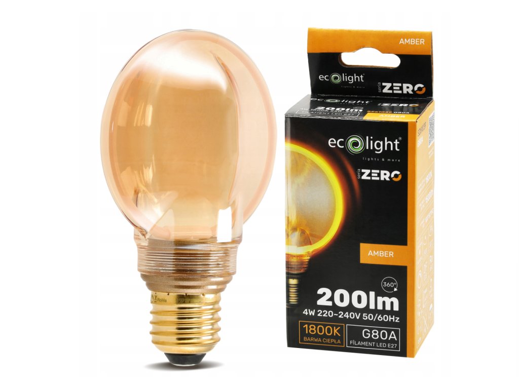 Dekoratívna LED žiarovka E27 4W 200lm G80 Amber Retro - rada ZERO
