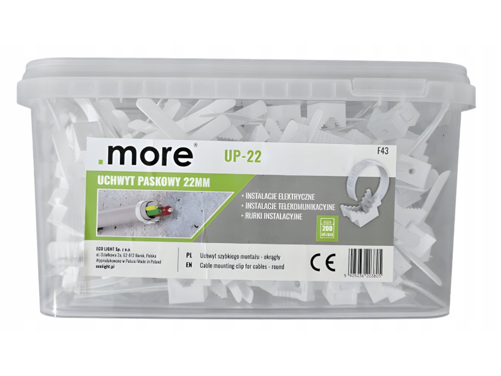 ❓ FAQ – Najczęściej zadawane pytaniaDo czego służą uchwyty UP-22? Służą do mocowania kabli oraz rur do podłoża w instalacjach elektrycznych i technicznych. Czy uchwyty nadają się do użytku domowego? Tak, sprawdzą się zarówno w domu, jak i w warsztacie czy firmie instalacyjnej. Jak pakowany jest zestaw? Uchwyty zapakowane są w praktyczne wiaderko, które ułatwia przechowywanie i transport. Czy zestaw wystarczy na większą instalację? Tak, 200 sztuk pozwala na wykonanie wielu punktów montażowych w jednej instalacji. | |