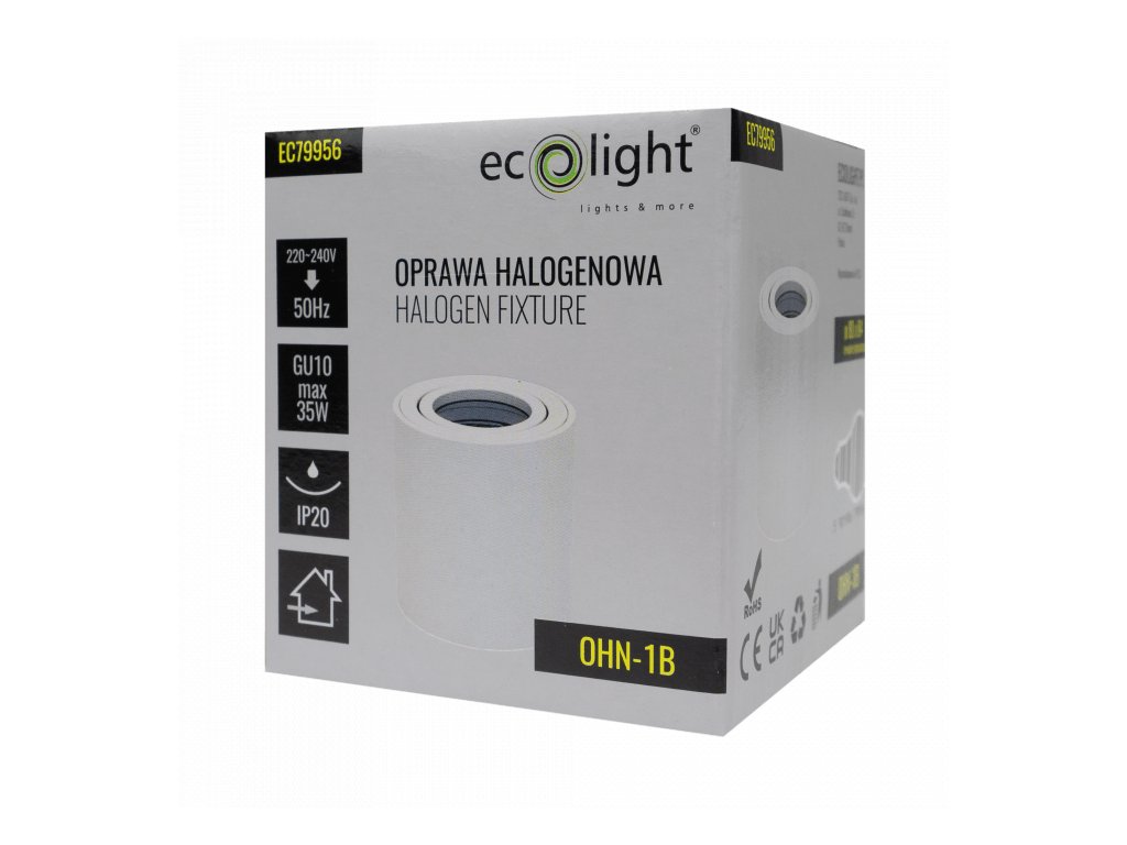 ✅ Dane techniczneProducent: ECO LIGHT Model: OHN-1 N/T Symbol dodatkowy: OHN-1B Typ oprawy: natynkowa, ruchoma (spot / tuba) Gniazdo: GU10 Źródło światła: 1 × GU10, max 35W Napięcie zasilania: 220–240V AC Stopień szczelności: IP20 Materiał: aluminium Kolor: biały Kształt: okrągły Wymiary: 80 × 84 mm |