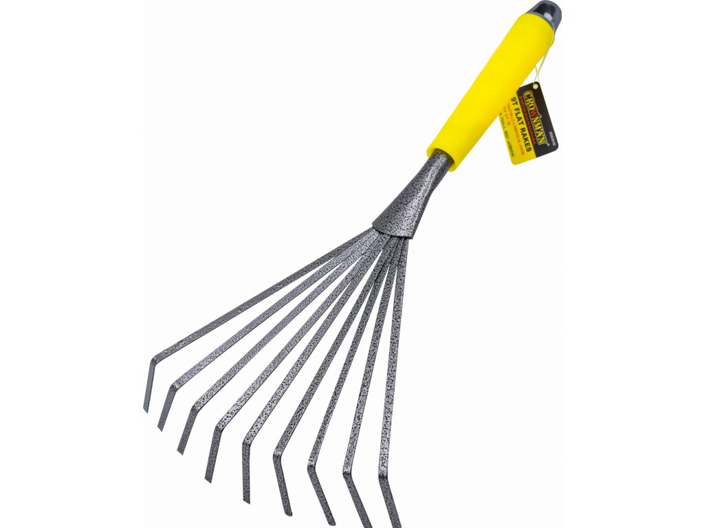 Univerzálne záhradnícke náradie: Malá kovová záhradná metla s vejárovým tvarom a 9 zubami.