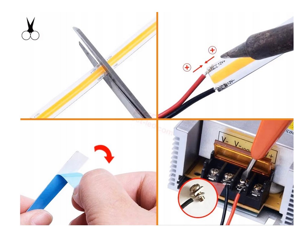 Napájanie : 12V - vyhradený LED zdroj na 12V, vhodný pre pásky s farebnou úpravou