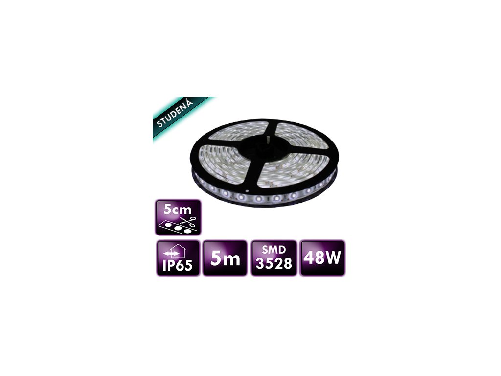 LED pásik - SMD 2835 - 5m - 120LED/m - 9,6W/m - IP65 - studená biela