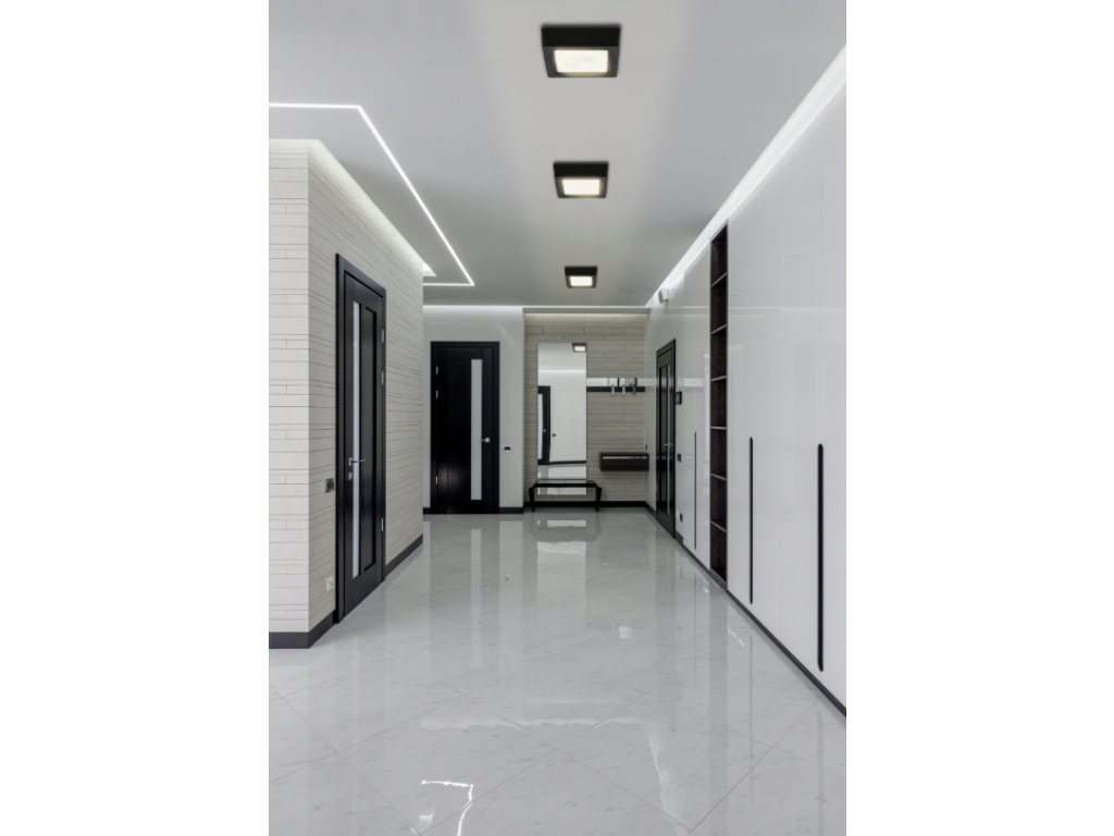 LED prisadený stropný panel – štvorec, 12 W, 1200 lm, čierny