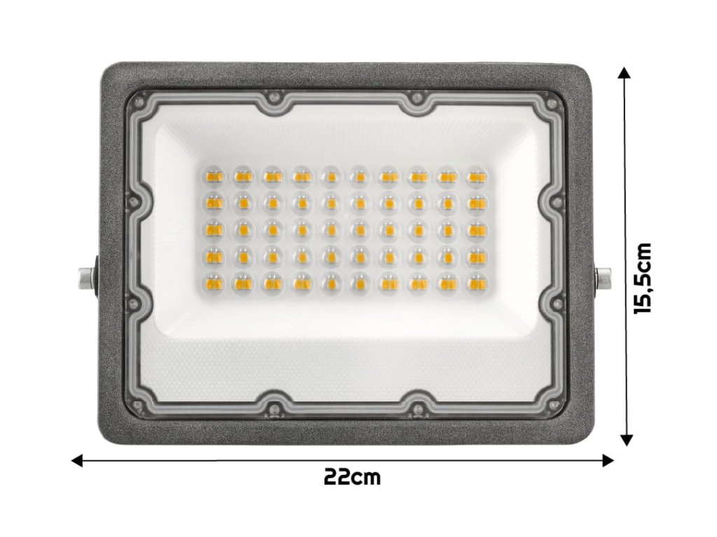 Silný výkon a jas: Vďaka pôsobivému výkonu 50 W a jasu 4500 lm náš reflektor efektívne osvetlí vonkajší priestor.