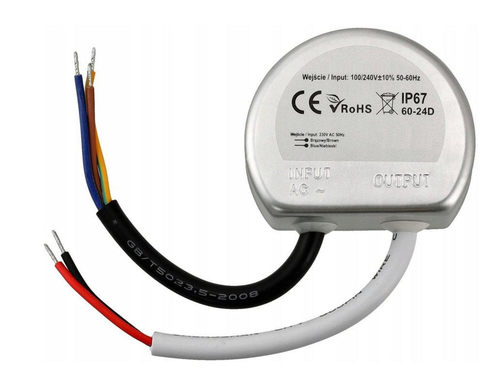12V 20W LED napájací zdroj IP67 - kompaktný a vodeodolný, určený pre montáž do inštalačnej krabice Ø60 mm. Poskytuje stabilné napätie 12V, ideálne pre napájanie LED pásikov a ďalších nízkonapäťových zariadení.