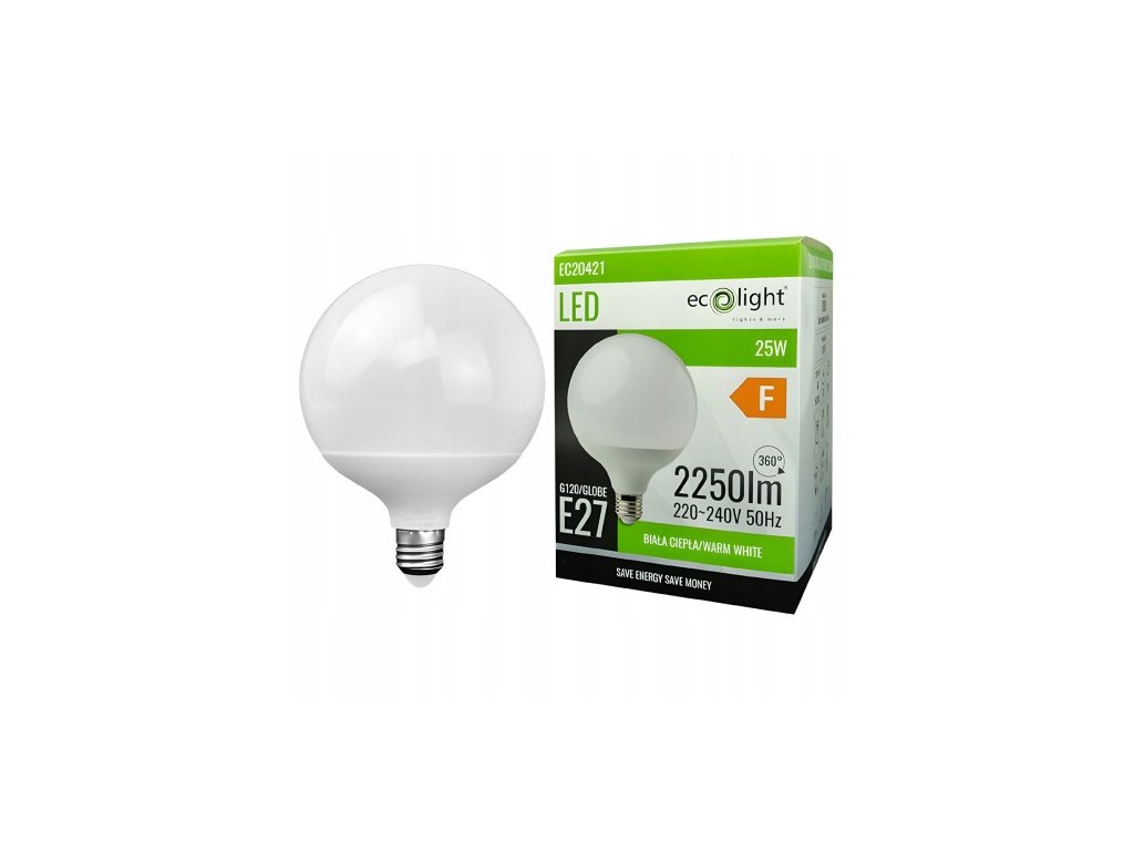 LED žiarovka E27 25W 2250lm 3000K Veľká guľa Silné teplé svetlo GLOBE G120