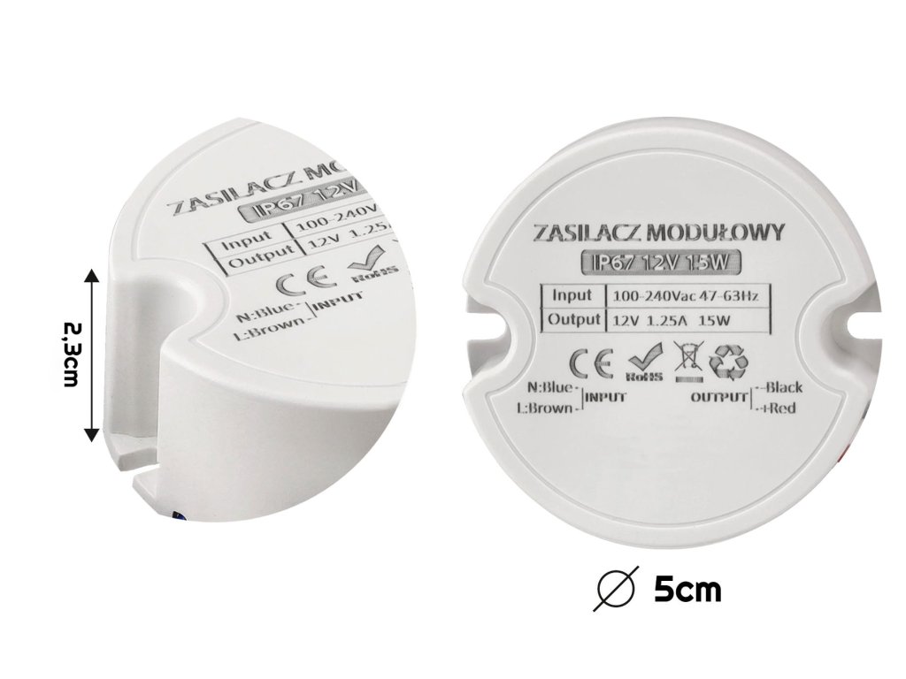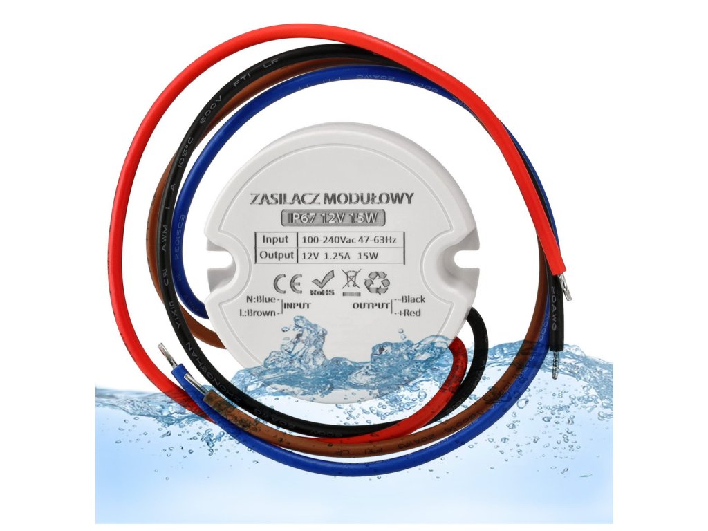 Zdroj, trafo 1,25A 15W vodotesný pre LED Pásky do krabice