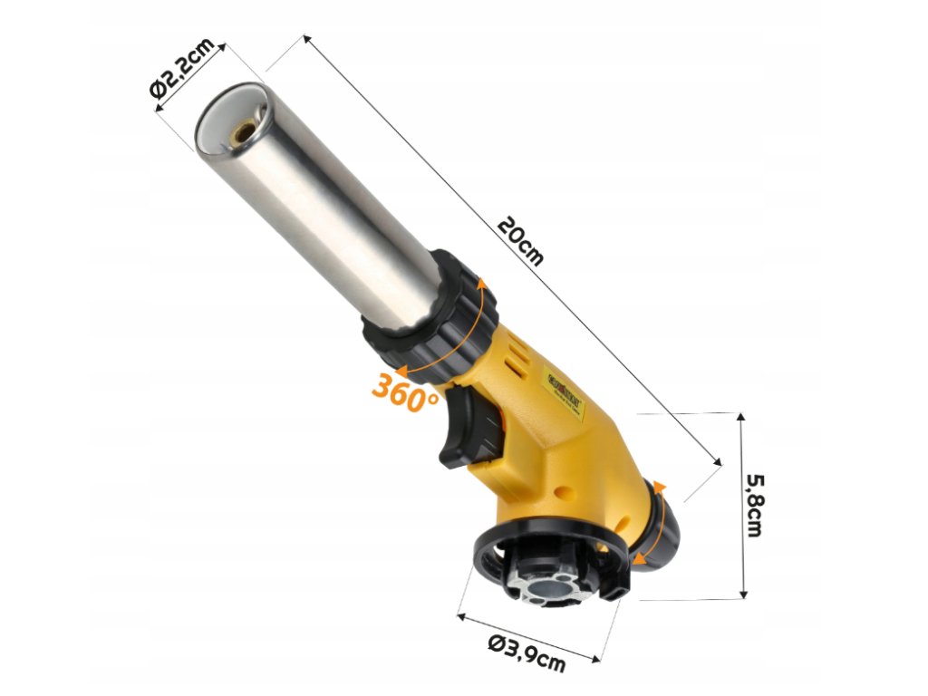 ✅ Technické údaje – plynový hořákTeplota plamene: až 1300 °C Regulace plamene: dvojitá Otáčení hlavy: 360° Zapalování: piezoelektrické Materiál jádra: měď Práce v jakékoli poloze: ano | |
