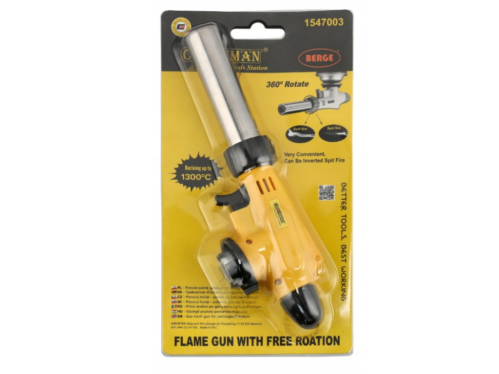 ✅ Technické údaje – plynový hořákTeplota plamene: až 1300 °C Regulace plamene: dvojitá Otáčení hlavy: 360° Zapalování: piezoelektrické Materiál jádra: měď Práce v jakékoli poloze: ano | |