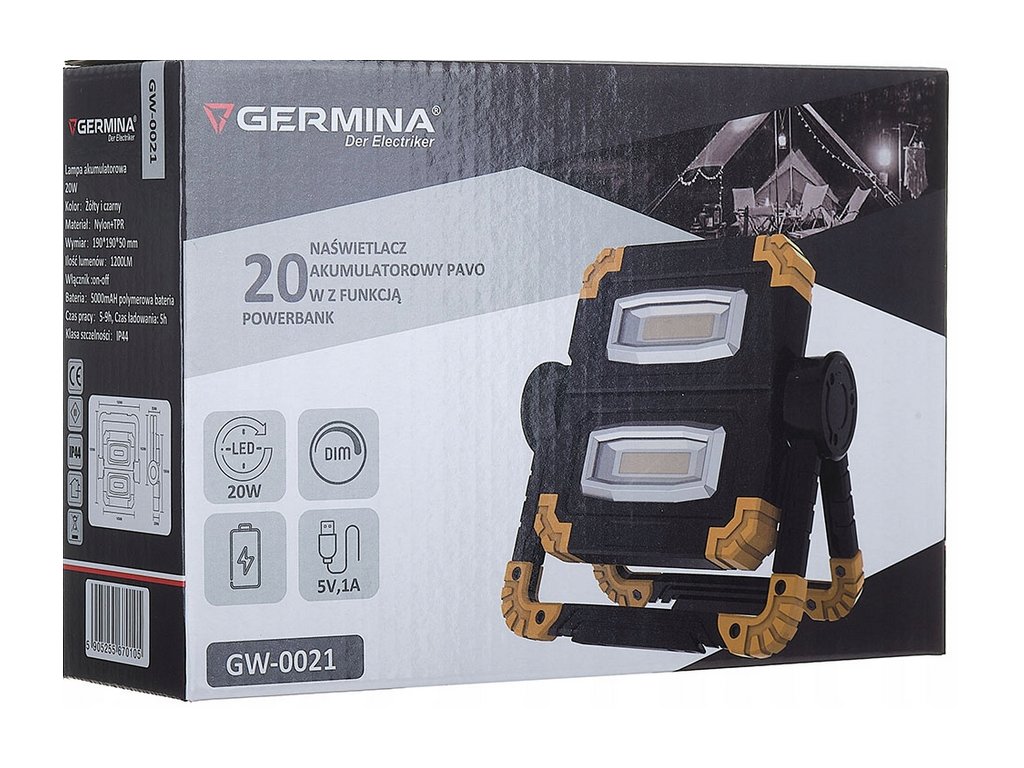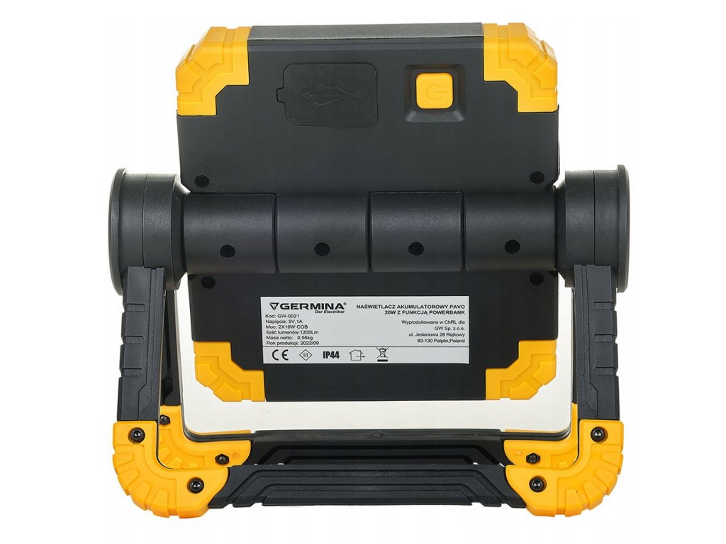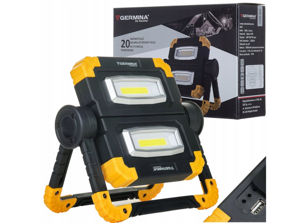 Prenosný dobíjací LED reflektor s funkciou powerbanky, dvojitý 20W - IP44 - studená farba