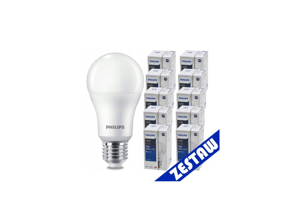 SADA 10 KS ŽIAROVIEK PHILIPS LED E27 10W = 75W 1055lm Neutrálna LED žiarovka 4000K