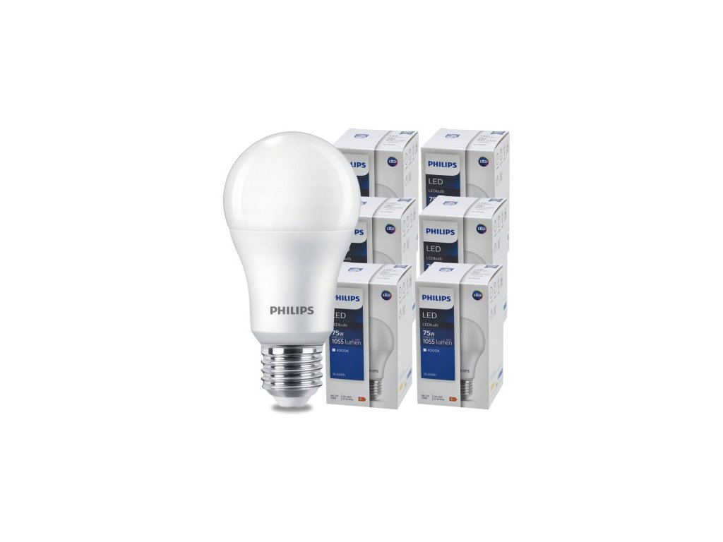 SADA 6 KS LED žiaroviek PHILIPS E27 10W = 75W 1055lm Neutrálna farba 4000K LED žiarovka