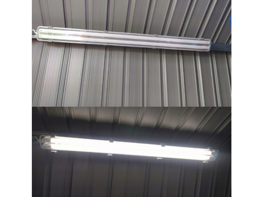 Sada LED lamp, hermetické svítidlo 60cm 18W 2880lm 6500K do garáže s plechem