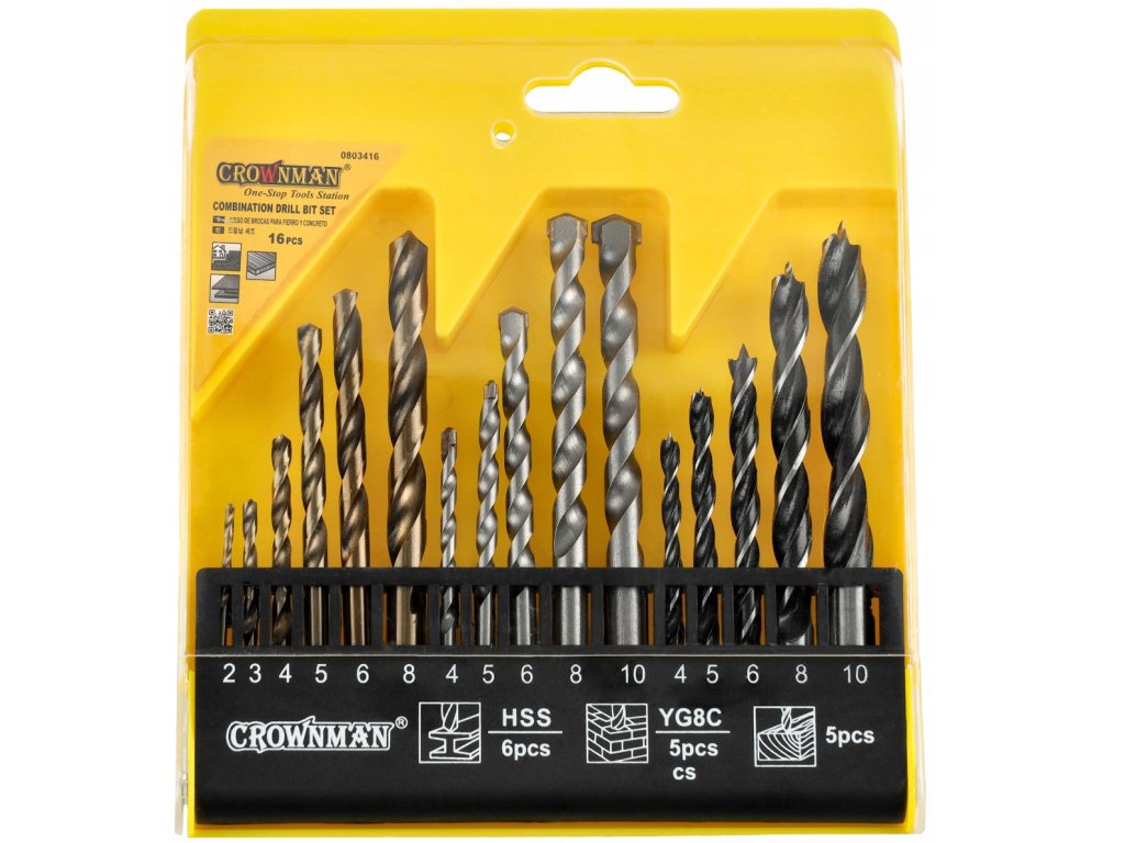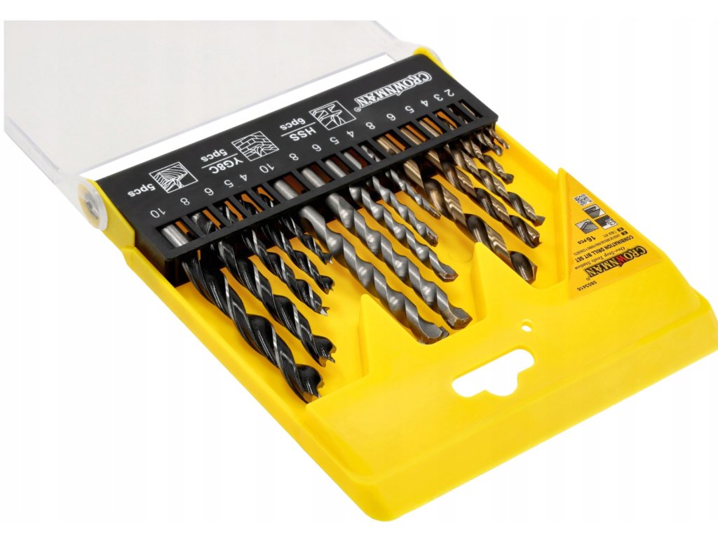 Sada vrtákov do kovu, betónu, dreva, 16 kusov, kompletná
