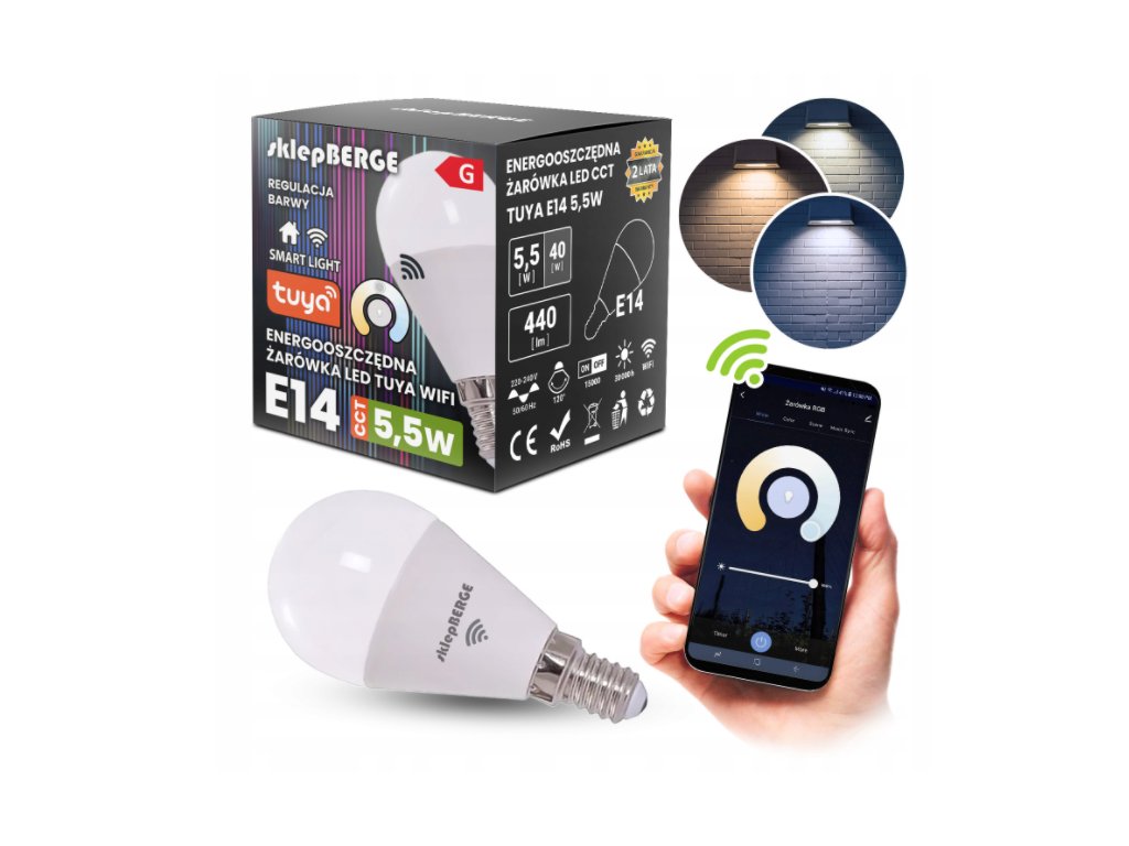 SMART E14 LED žiarovka 5,5W WW-NW-CW Wi-Fi TUYA CCT