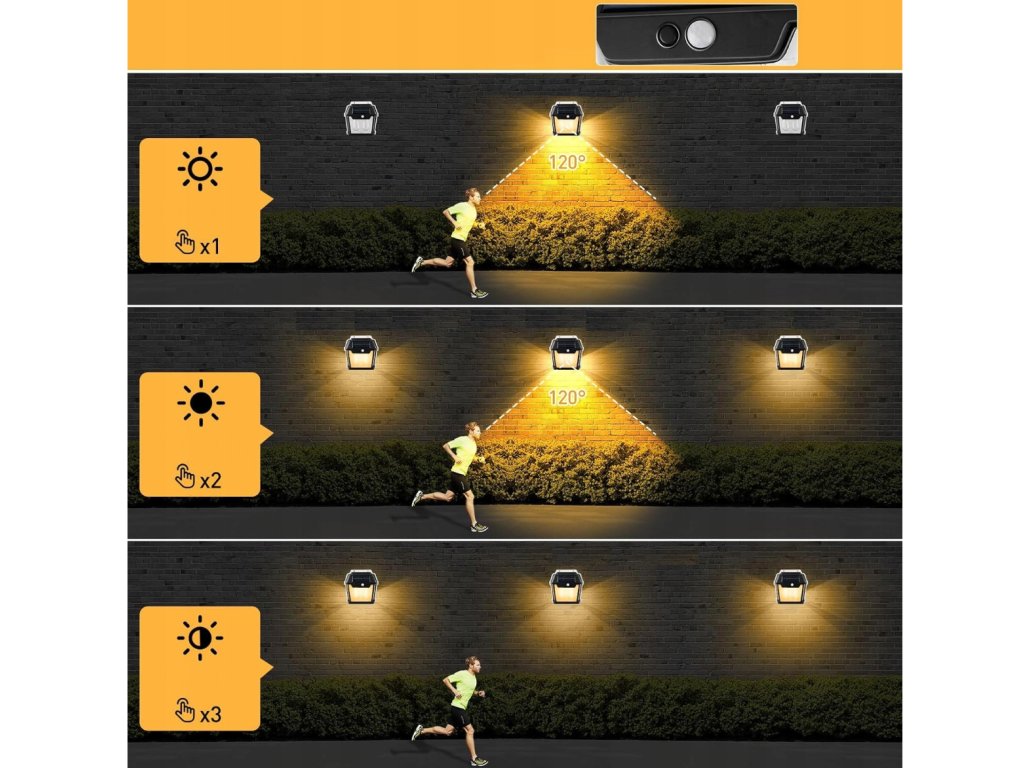 1. Lampa pracuje na 100% výkon, keď je detekovaný pohyb 2. Lampa pracuje na 30% výkon, po detekcii pohybu sa rozsvieti na 100% výkon a potom sa vráti do režimu 30% výkonu 3. Lampa funguje na 30% výkonDodatočné parametre