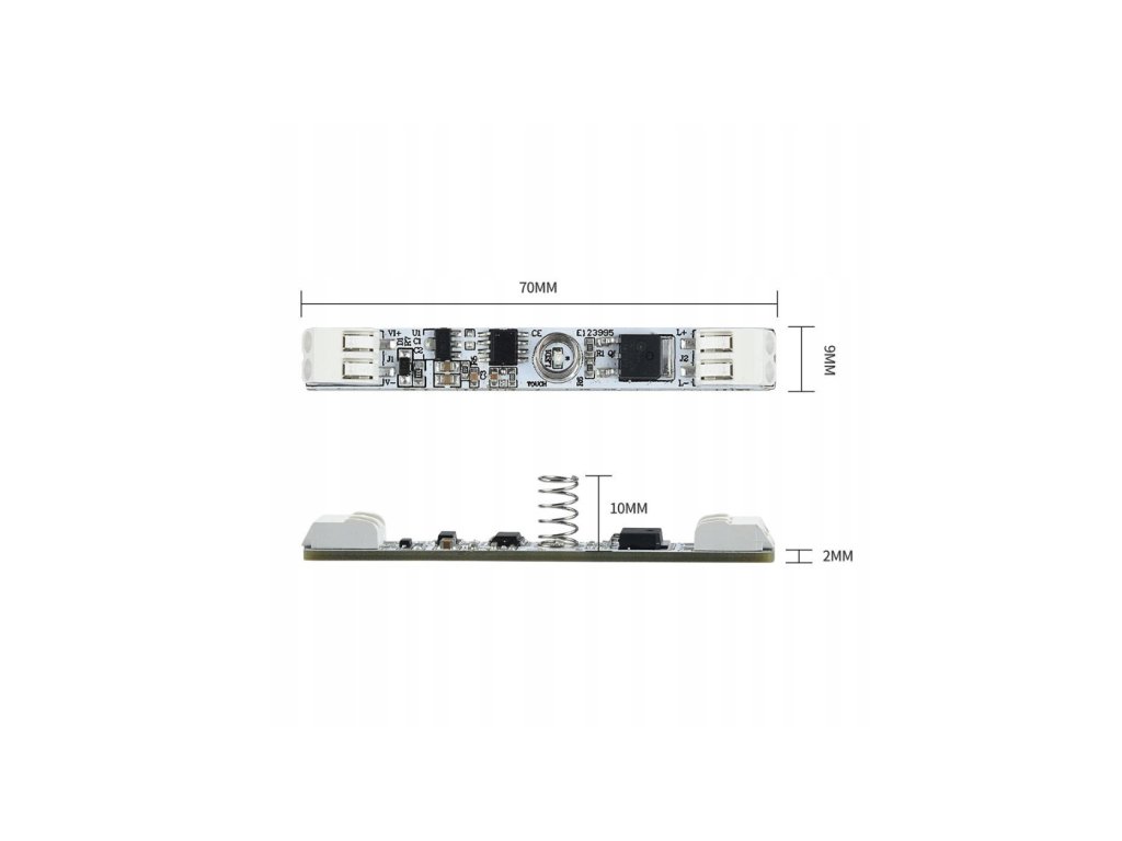 - Kompaktná veľkosť:Vďaka malým rozmerom (70 mm x 9 mm x 12 mm) je tento spínač ideálny na použitie v LED profiloch.