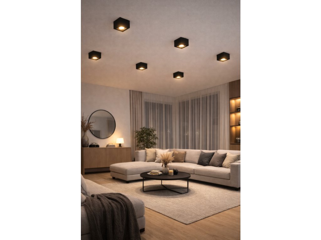 ❓ FAQ – Najczęściej zadawane pytaniaCzy oprawa pozwala na regulację kierunku światła? Tak, konstrukcja umożliwia regulację kierunku świecenia źródła światła. Jakie żarówki można zastosować? Oprawa przeznaczona jest do żarówek GU10 LED o maksymalnej mocy 35W. Czy jest to oprawa natynkowa? Tak, montowana jest bezpośrednio na suficie. Do jakich pomieszczeń jest przeznaczona? Do wnętrz suchych, takich jak salon, kuchnia, korytarz, biuro lub lokal usługowy (IP20). | |