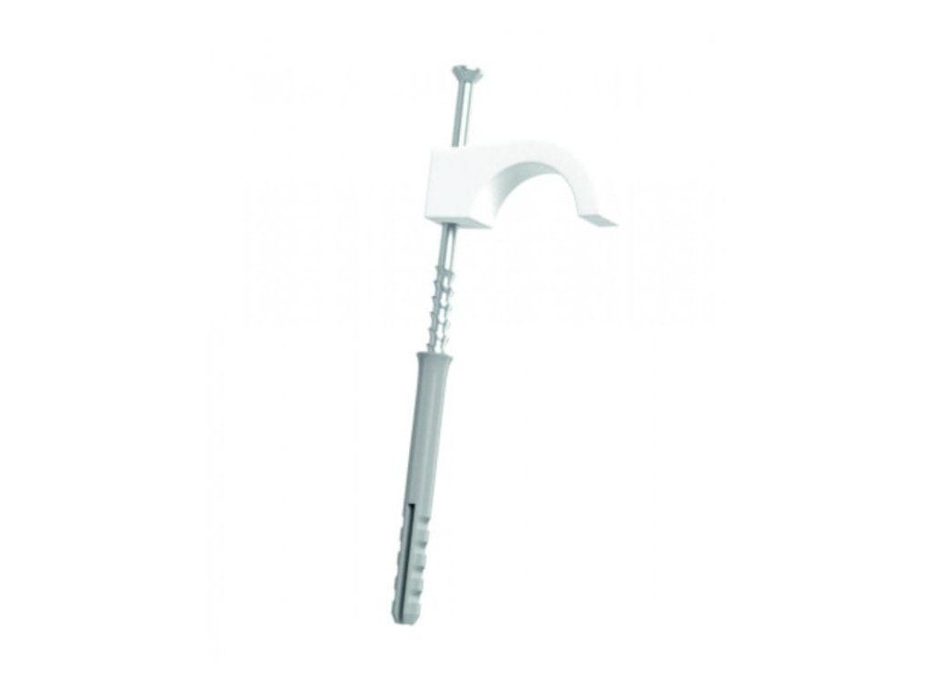 Jednoduchý podlahový hák pre rúrky od Ø 14 do Ø 25 s hmoždinkou 6x40 a skrutkou 4,8x75, priemer vrtáka Ø 6 (50ks) - OP 01 SM Univerzálny hák s hmoždinkou Výrobky určené na upevnenie rúr vo vnútorných aj vonkajších inštaláciách. Používajú sa na inštaláciu PVC, PESCHEL a ďalších rúrok s prierezom od 14 mm do 25 mm. Vyrobené z modifikovaného polyetylénu s vysokou hustotou, odolného proti poškodeniu. Nie sú nutné žiadne rozperné skrutky. K dispozícii v šedej a bielej farbe.